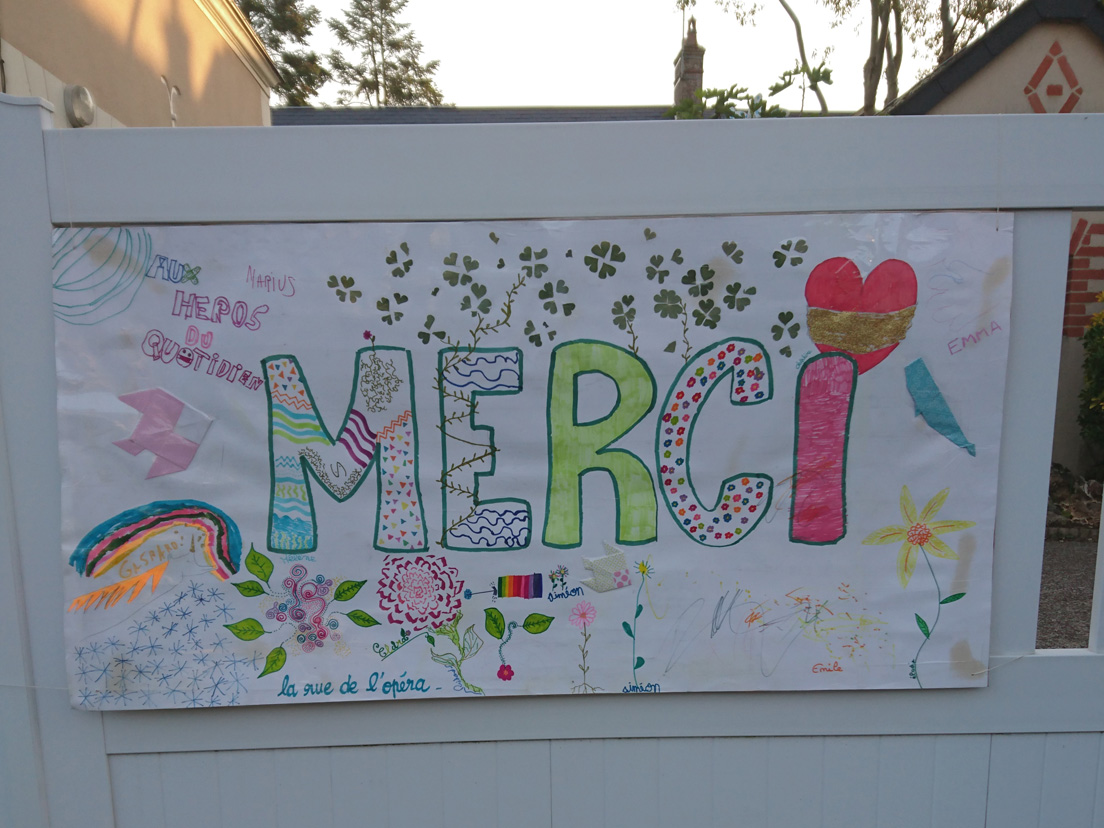 Vous retrouverez ici quelques unes de ces créations. N'hésitez pas à nous envoyer une photo de vos messages de soutien, nous les publierons.